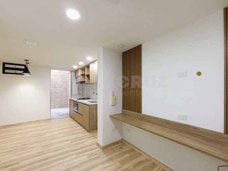 Cómodo apto en el sector de velódromo cerca a la calle San Juan, cuenta con un área de 55 mts aproximadamente, el inmueble ofrece: sala-comedor, 2 alcobas, 2 closets, 2 baños cabinados, cocina integral con red de gas, instalación de lavadora, 1 patio, citófono y piso en madera.