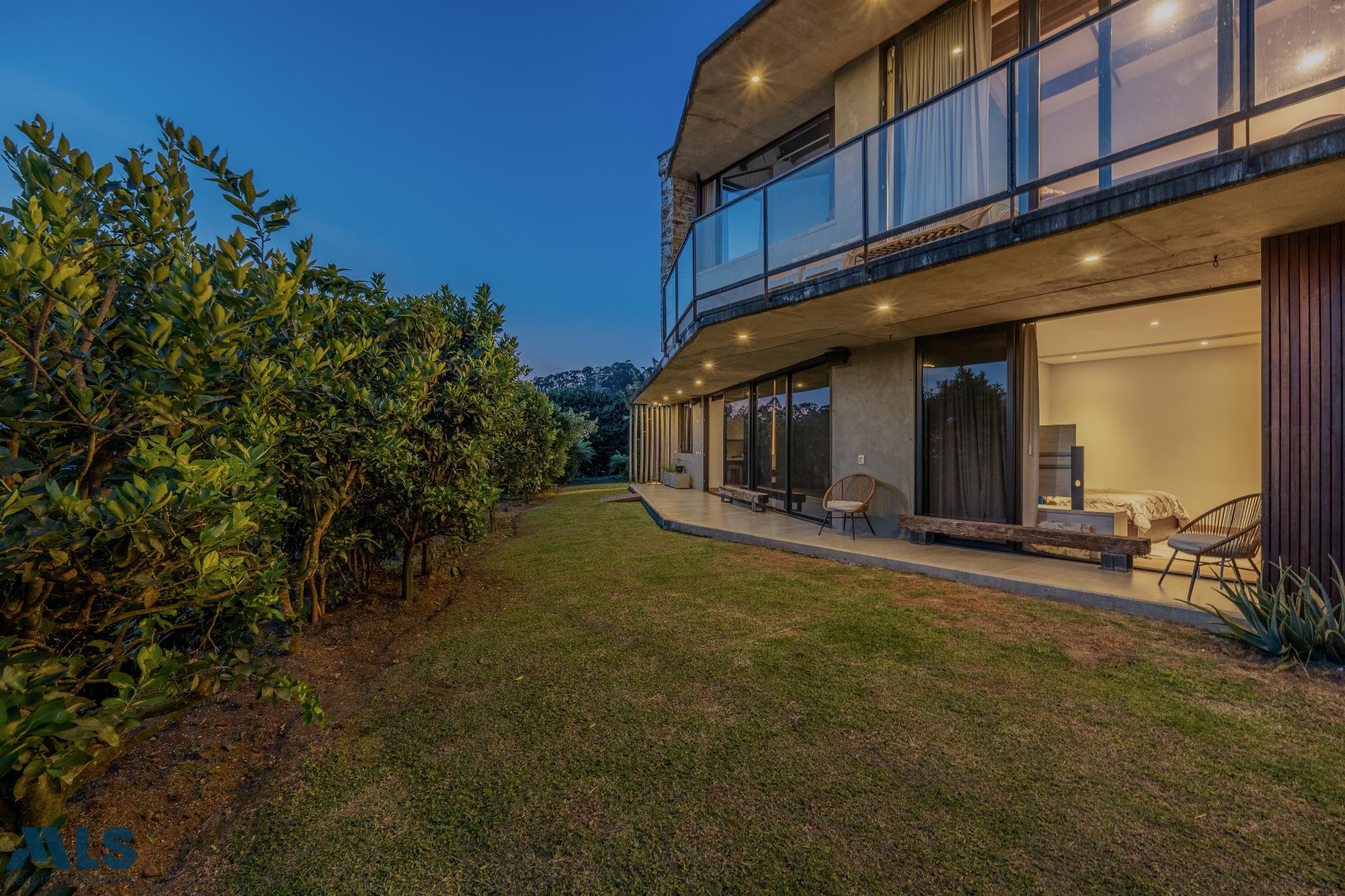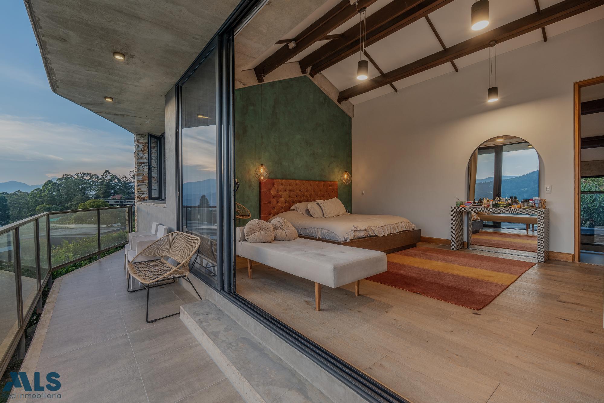 Descubre esta espectacular casa campestre en la Loma del Escobero Envigado, un lugar donde la naturaleza y el lujo se encuentran. Su diseño contemporáneo, con ventanales de piso a techo y amplias terrazas, inunda cada espacio de luz natural y ofrece vistas panorámicas incomparables a las montañas. La propiedad cuenta con áreas sociales abiertas, perfectas para compartir con familia y amigos; habitaciones con baño privado, que garantizan comodidad y privacidad; y una cocina moderna y equipada, diseñada para los amantes del buen vivir. Además, su zona verde privada conecta con la tranquilidad del entorno natural, ideal para el descanso y el esparcimiento. A pocos minutos de la zona urbana de Envigado, colegios, universidades y centros comerciales, esta casa logra el equilibrio perfecto entre exclusividad, comodidad y conexión con la ciudad. Un hogar único para quienes buscan estatus y calidad de vida.